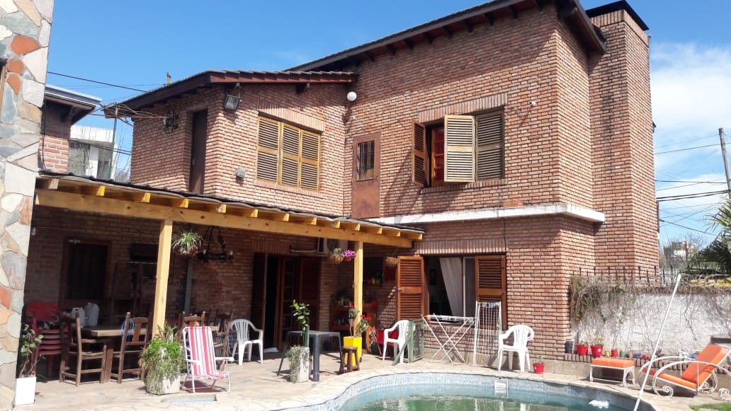 Excelente Casa 6 Ambientes con Piscina y Cochera, en dos plantas, cuatro baños, techo de tejas, pisos de cerámicos, con una antigüedad de 30 años, agua corriente, gas natural, hogar a leña, aire acondicionado frio calor, estufas de tiro balanceado, muebles de cocina, energía eléctrica, internet, televisión por cable, Living de 3.90 x 3.30, Comedor de 4 x 3.50, Comedor Diario de 5.60 x 3.50, Dormitorio (1) de 3.10 x 2.80 mas placard y balcón corrido de 3.30 x 1, Dormitorio (2) de 3.10 x 2.80 mas placard y balcón corrido de 2.50 x 1, Dormitorio (3) de 3.30 x 3.10, Dependencia de 2.50 x 1.30 mas baño, Piscina de 7.70 x 3.50, Depósito de 3.50 x 3, muy luminosa y en muy buen estado.