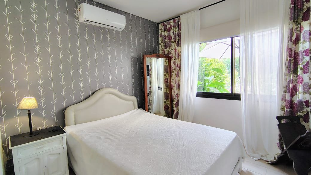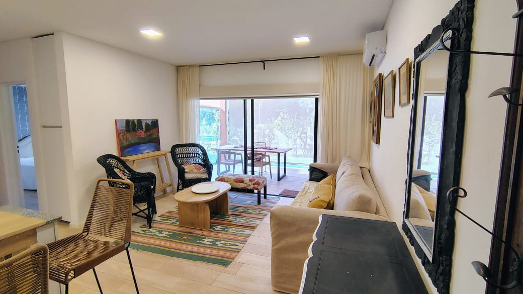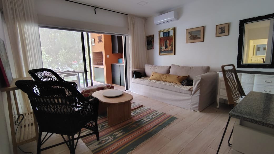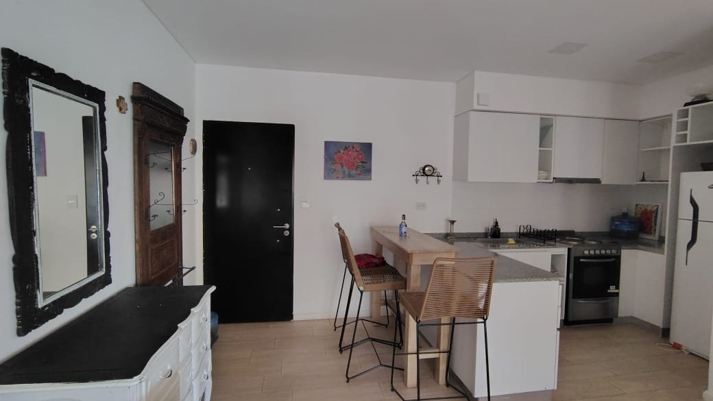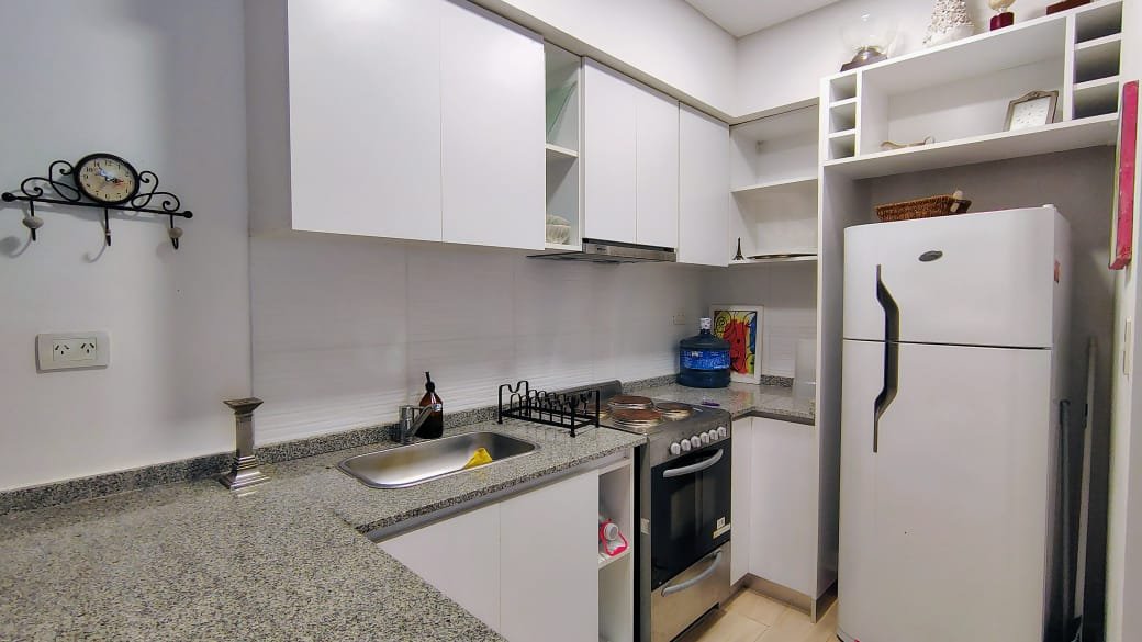 Excelente Departamento 2 Ambientes con Jardín, Cochera Fija y Cubierta, living comedor de 5 x 3.80, Cocina Incorporada de 3 x 1.60, baño completo, dormitorio de 3 x 3 mas placard, jardín propio de 7.80 x 3 + 3 x 2 (32 m2), quincho con parrilla y pileta de 4.40 x 3, aire acondicionado frio calor, todo eléctrico, muy luminoso y en excelente estado.