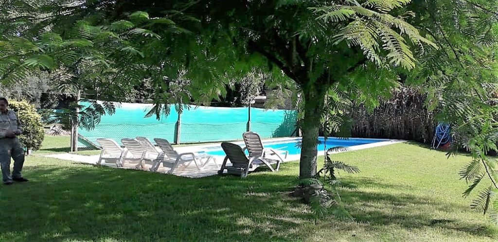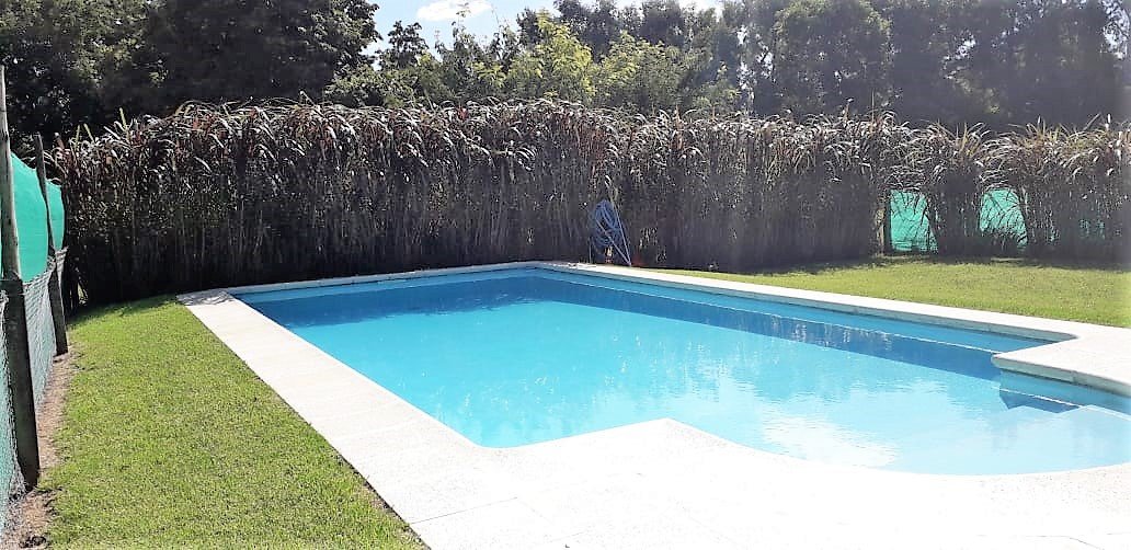 Excelente Chacra con Galpón, Piscina y Parrilla en San Alejo, Casa 6 Ambientes con 2 baños, piscina de 12 x 6, en una planta, con techo de losa, living Comedor de 6.50 x 6.20, Cocina de 4.70 x 2.10, Lavadero de 2.90 x 2.20, Escritorio de 2.20 x 2.20, Oficina de 6 x 4, Dormitorio (1) de 3.80 x 2.80, Dormitorio (2) de 3.20 x 2.90, Dormitorio (3) de 3.70 x 3.20 Todos con Placard, Galería de 8 x 3 con Parrilla, Cuarto de Herramienta , Entre Piso, Galpón de 36 m2, aire acondicionado, televisión por cable, calefacción por hogar a leña, energía eléctrica, muebles de cocina, alarma, construida con doble pared, muy luminosa y en muy buen estado.