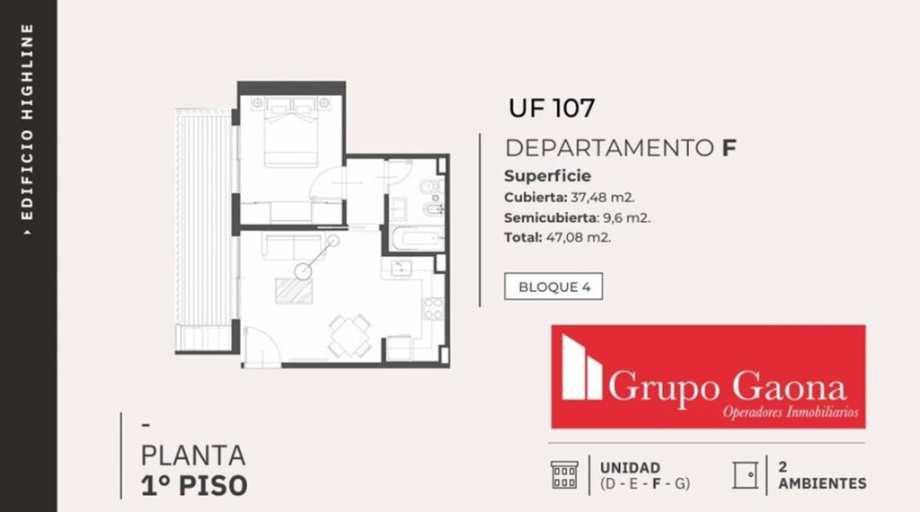 Superficie Total 47.10 m2 – Superficie Cubierta 37.50 m2 – Descubierta 9.50 m2