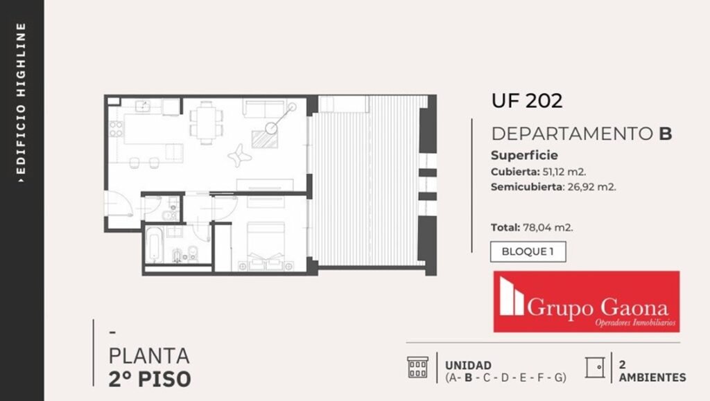 Superficie Total 78 m2 – Superficie Cubierta 51.10 m2 – Descubierta 26.90 m2