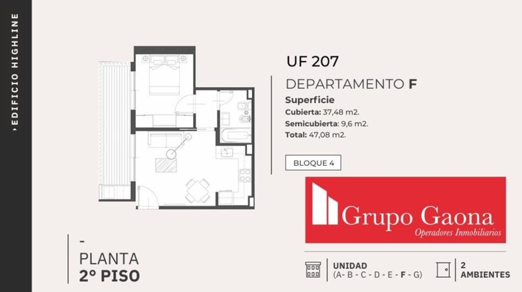 Superficie Total 47.10 m2 – Superficie Cubierta 37.50 m2 – Descubierta 9.50 m2