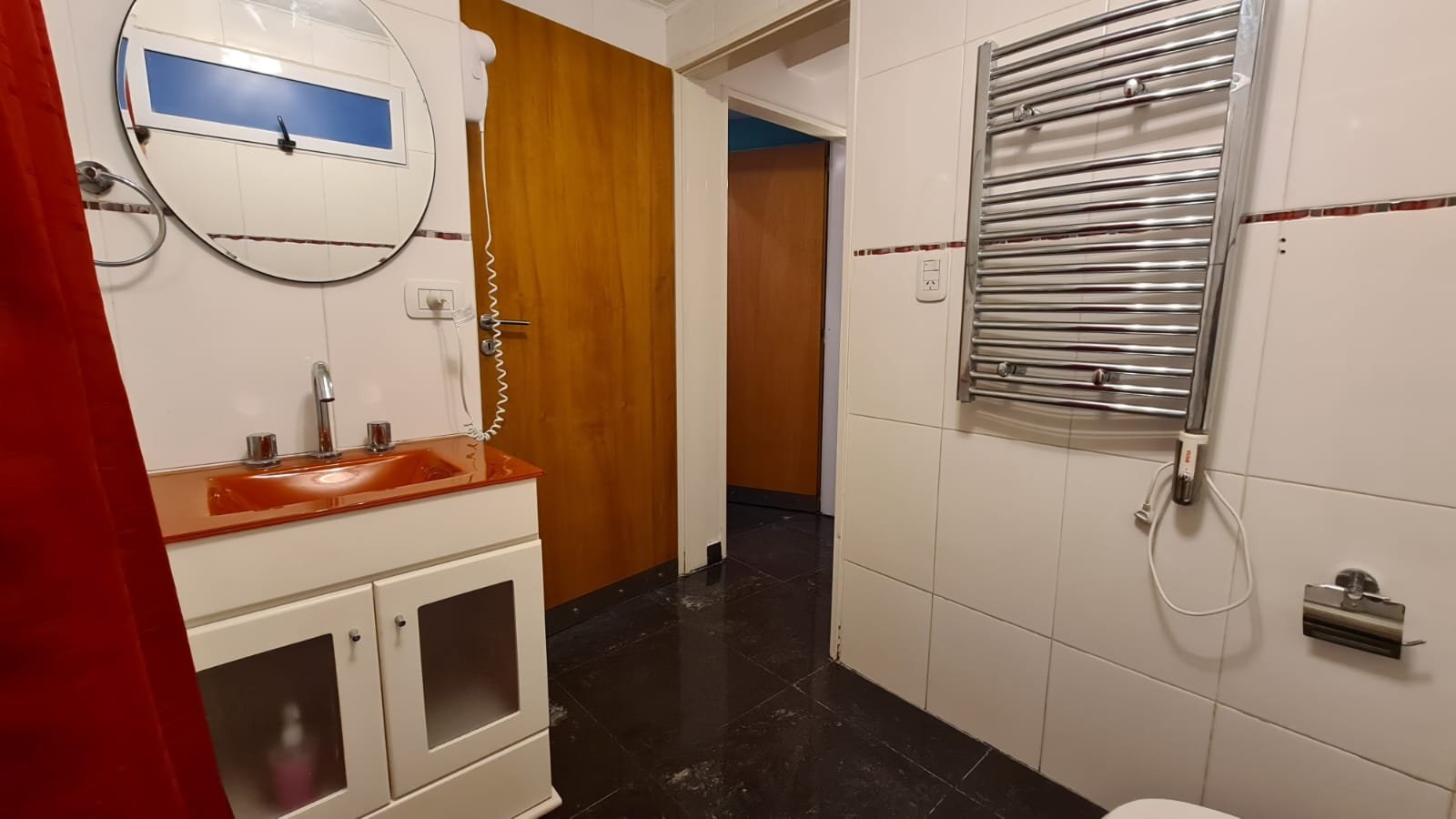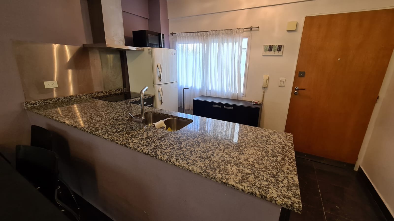 Excelente Departamento 3 Ambientes con Balcón, al contra frente con muy buena luz, con pisos de porchelanato, aire acondicionado frio calor, puerta blindada, Living comedor con cocina intregada y lavadero de 6.60 x 2.80, Balcón triangular de largo 2.80 y de largo 1.50, baño completo, dormitorio (1) de 3 x 2.80 mas placard y dormitorio (2) de 3 x 2 irreg. mas placard.